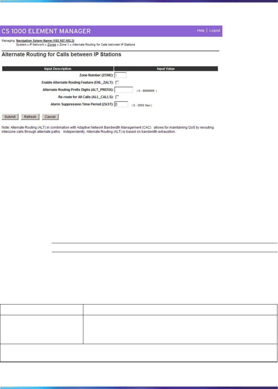 Access the Alternate Routing for Calls between IP Stations web page to configure the feature