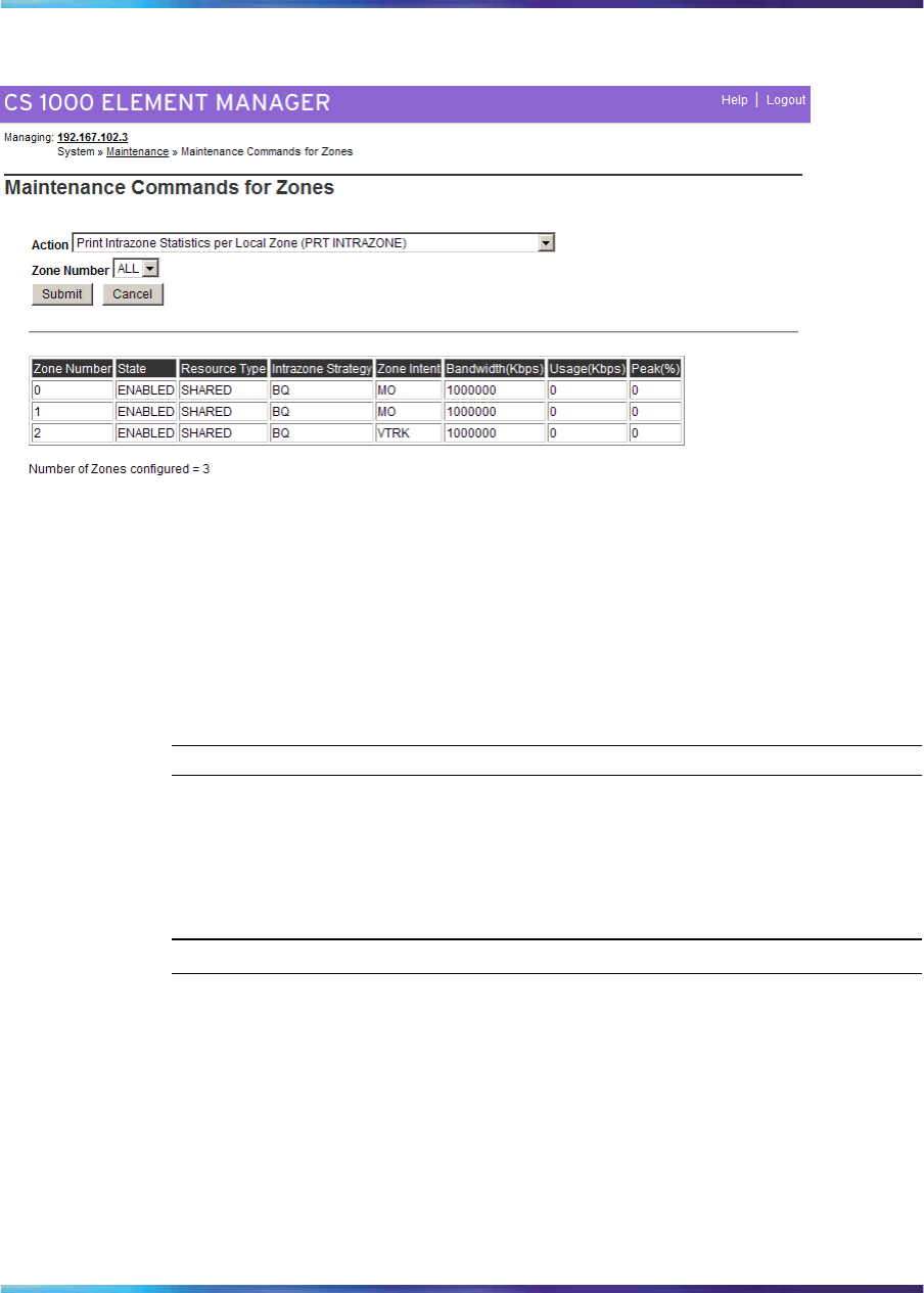 Click Submit. Figure 60 "The Maintenance Commands for Zones