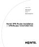 Preface The VPN Router 1010, 1050, and 1100 are part of the Nortel VPN Router system. Nortel VPN Routers support secure, reliable IP VPNs in a single, integrated hardware device. Throughout this guide, the VPN Router 1010, 1050, and 1100 are also referred to collectively as the gateway. This guide provides instructions about how to install the VPN Router 1010, 1050, and 1100 and about how to install and replace option cards in the VPN Router 1100. This guide also includes technical specifications.