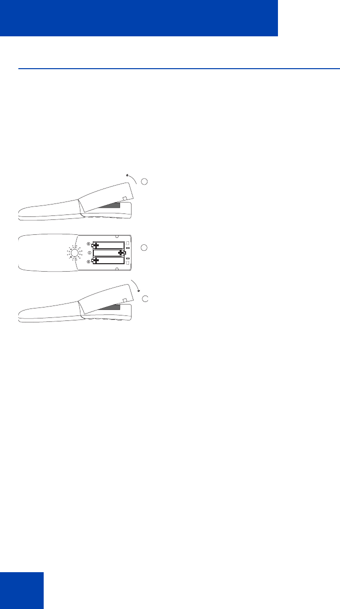 The battery compartment is on the back of the handset. It takes the three