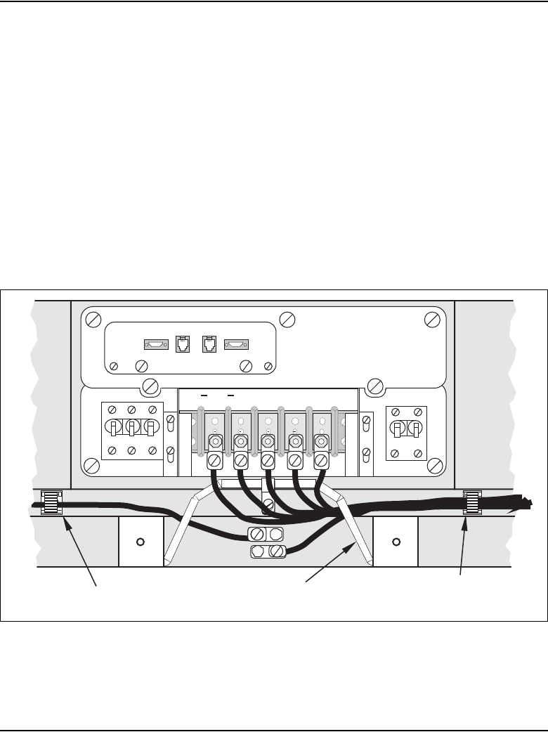 cable-tie saddles and under the cable restraint bar at the base of the pedestal
