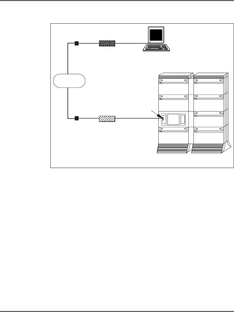 1 At the remote end, connect an RS-232 cable to the terminal and to the