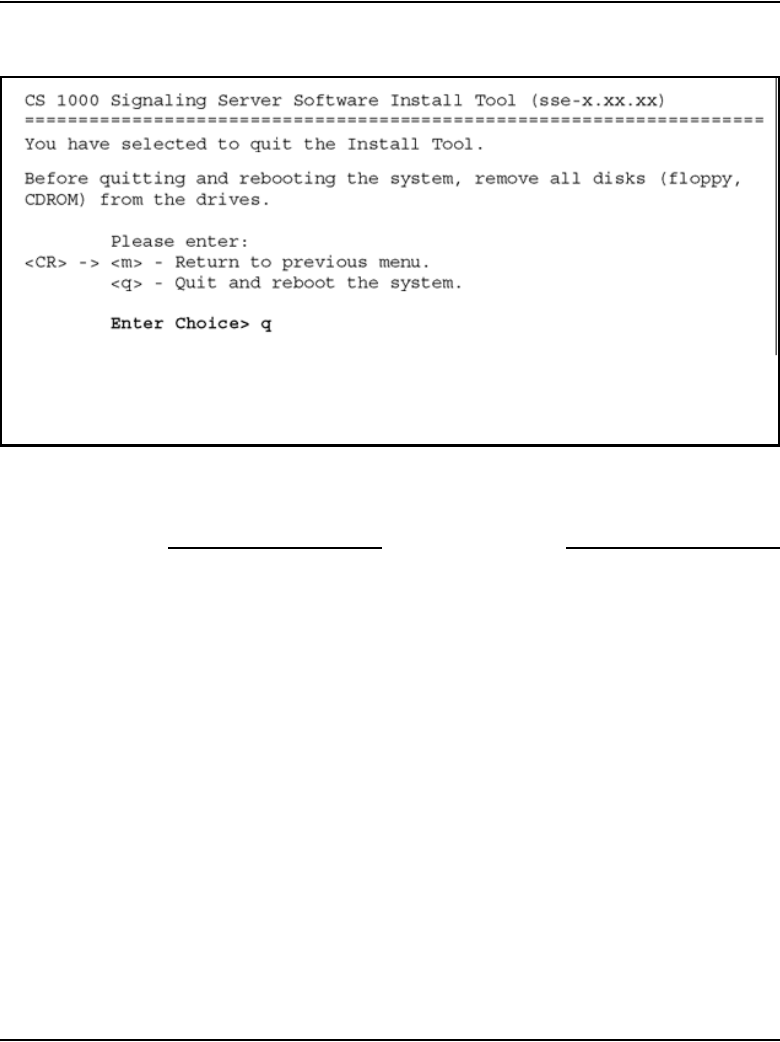 14 Enter q to close/terminate the Installation Tool and reboot the Signaling