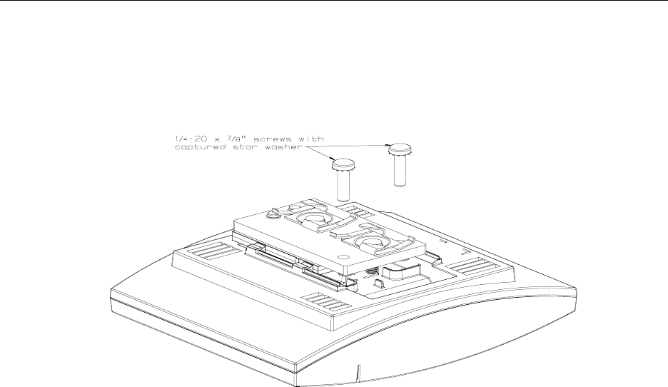 6. Screw in the two 1/4-20 screws with the captured star washers as shown. Check that the