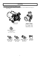 Troubleshooting (continued) PROBLEM Pump will not turn on CAUSE SOLUTION Bad electrical connection Short in wires Thermal protector activated Fuse blown Faulty pressure switch Faulty relay Incorrect voltage Water supply empty Plunger seals worn Leak in the system Regulator bypass seal worn Faulty pressure switch Check battery connections Check condition of wires Wait for motor to cool Replace fuse Replace pressure switch assembly Replace relay Check 12V voltage (±10%) Refill supply container Tighten f