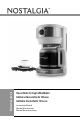 ENGLISH RETURNS & WARRANTY SHOULD YOUR UNIT NOT WORK OR IF DAMAGED WHEN YOU FIRST TAKE IT OUT OF THE BOX, PLEASE RETURN IT TO THE PLACE OF PURCHASE IMMEDIATELY. CLASSIC RETRO 12-CUP COFFEE MAKER / CLCOF12SAQ Should you have any questions, please contact us via email or at the customer service number listed below between the hours of 8:00 AM and 5:00 PM, Monday through Friday, Central Standard Time. Distributed by: Nostalgia Products LLC 1471 Partnership Dr.