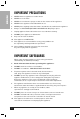 ENGLISH IMPORTANT PRECAUTIONS 1. NEVER immerse appliance or cord in water. 2. NEVER use near water. 3. NEVER use an abrasive sponge or cloth on the exterior of the appliance. 4. NEVER leave appliance unattended while in use. 5. NEVER place anything other than what is intended to be cooked in the appliance. 6. Always use ELECTRIC QUESADILLA MAKER with Drip Tray in place. 7. Unplug appliance from outlet when not in use and when cleaning. 8. DO NOT place appliance in dishwasher. 9.