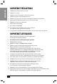 ENGLISH 13. A short power-supply cord is provided to reduce the risk resulting from becoming entangled in or tripping over a longer cord. Do not let cord hang over edge of table, countertop or touch hot surfaces. 14. Always plug cord into wall outlet before operation. There is no on/off switch. To turn off, remove plug from wall outlet. Allow unit to cool completely before putting away. 15. An extension cord or longer detachable cord is not recommended for use with this appliance. 16.