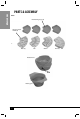 PIÈCES ET ASSEMBLAGE PIÈCES Imbriquer les bacs (4) Moules en silicone (4) Ourson (2) Poisson Vers de terre Base chauffante En marche | Arrêt O FRANÇAIS Pots chauffants 21 Ourson (2)