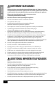 SALVAGUARDIAS IMPORTANTES Una persona que no haya leído y comprendido todas las instrucciones de uso y seguridad no está calificada para utilizar este aparato. Todos los usuarios de este dispositivo deben leer y comprender este Manual de instrucciones antes de utilizar o limpiar este aparato. Cuando utiliza aparatos eléctricos, siempre se deben seguir algunas medidas básicas de seguridad que incluyen las siguientes: Read all instructions before operating this appliance. 2.