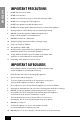 CONTENTS SAFETY . . . . . . . . . . . . . . . . . . . . . . . . . . . . . . . . . . . . . . . . . . 2 IMPORTANT PRECAUTIONS . . . . . . . . . . . . . . . . . . . . . . . . . . . . . . 3 IMPORTANT SAFEGUARDS . . . . . . . . . . . . . . . . . . . . . . . . . . . . . . 3 INTRODUCTION . . . . . . . . . . . . . . . . . . . . . . . . . . . . . . . . . . . . . 4 PARTS & ASSEMBLY .