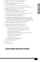 FRANÇAIS L'utilisation d'accessoires pourrait provoquer des blessures; 8. NE PAS utiliser à l'extérieur; 9. Placer l'appareil le plus près possible d'une prise de courant pour éviter de se blesser en trébuchant sur le cordon électrique; 10. NE PAS placer sur ou près d’un brûleur à gaz ou électrique, ni près d’un four qui chauffe. 11. Une attention toute particulière doit être accordée au moment de déplacer l'appareil; 12.