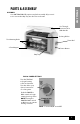 PARTES Y ENSAMBLAJE ENSAMBLAJE Su RODILLO PARA PERROS CALIENTES requiere muy poco ensamblaje. Solo tiene que insertar la Bandeja de goteo en la ranura de la unidad. Puerta protectora transparente con asa Rodillos de cocción Dial del temporizador Dos rejillas de calentamiento Bandeja de goteo/ bandeja para migas Botón de encendido Luz indicadora AJUSTES DEL DIAL Y DE ENCENDIDO Gire el dial de TIEMPO para comenzar a calentar los rodillos y el calentador.