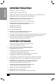 11. NE PAS verser d’eau chaude ni aucun autre liquide dans la tête d’extraction. 12. NE PAS placer sur ou près d’un brûleur à gaz ou électrique, ni dans un four chaud ou en train de chauffer. 13. Un soin extrême doit être apporté au déplacement de cet appareil. 14. Cet appareil doit être placé sur une surface plate afin de pouvoir fonctionner adéquatement. 15. NE PAS utiliser cet appareil à des fins autres que celles pour lesquelles il a été conçu. 16.