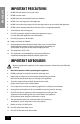 CONTENTS IMPORTANT PRECAUTIONS . . . . . . . . . . . . . . . . . . . . . . . . . . . . . . 3 IMPORTANT SAFEGUARDS . . . . . . . . . . . . . . . . . . . . . . . . . . . . . . 3 INTRODUCTION . . . . . . . . . . . . . . . . . . . . . . . . . . . . . . . . . . . . . 4 PARTS & ASSEMBLY . . . . . . . . . . . . . . . . . . . . . . . . . . . . . . . . . . . 5 HOW TO OPERATE . . . . .