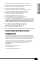 ENGLISH IMPORTANT PRECAUTIONS 1. NEVER immerse the base or cord in water. 2. NEVER use near water. 3. NEVER leave unit unattended if used near children. 4. NEVER use a scouring pad on the appliance. 5. NEVER use an abrasive sponge or harsh cleaning products on or inside of the appliance. 6. NEVER use for anything other than what this item was originally intended. 7. Avoid contact with moving parts. 8.