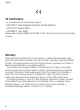 English CE Certification This instrument conforms to the following standards: • EN 61326-1 Electromagnetic Emissions and Susceptibility • EN 61010-1 General Safety • EN 60825-1 Laser Safety Between approximately 250Mhz and 800 Mhz at 3V/m, the instrument may not meet its stated accuracy. Warranty Oakton warrants this product to be free from defects in material and workmanship under normal use and service for a period of one year from date of purchase, except as hereinafter provided.