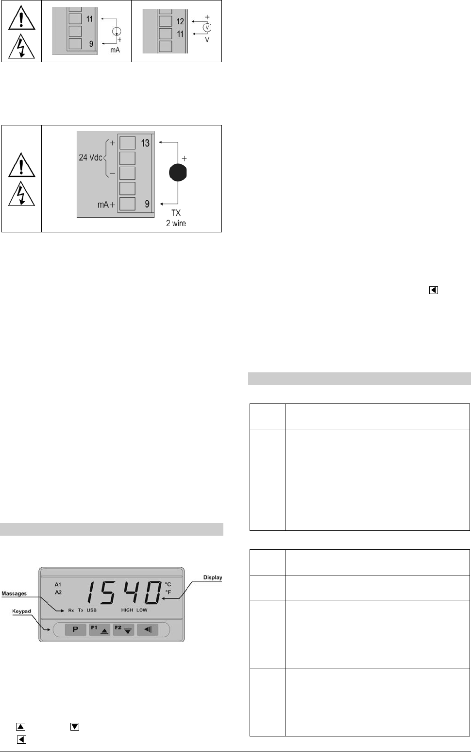 This indicator offers an auxiliary 24 Vdc power supply which is