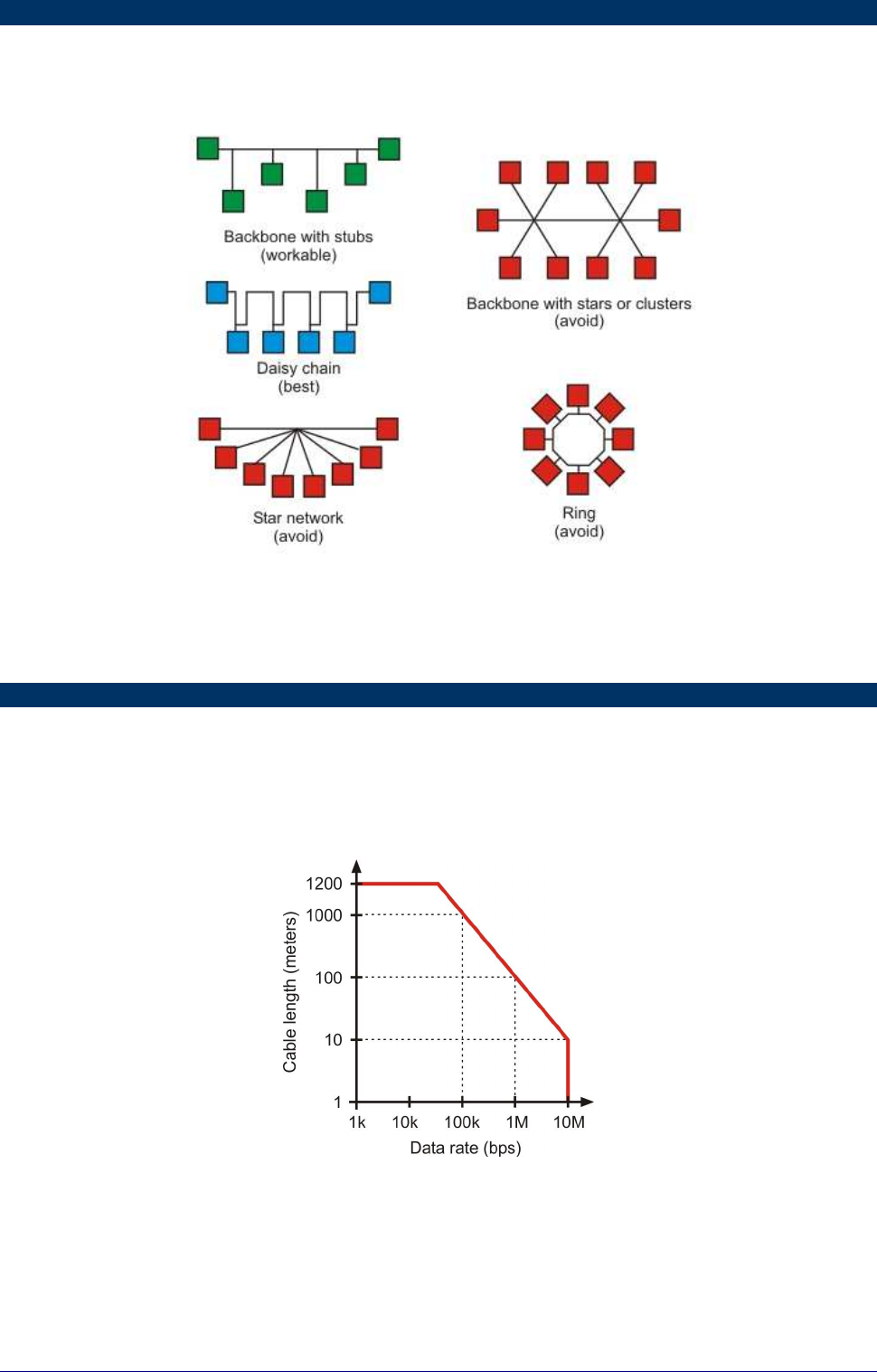 When a backbone with stubs topology is used, the stub length should be much shorter than the main bus length.