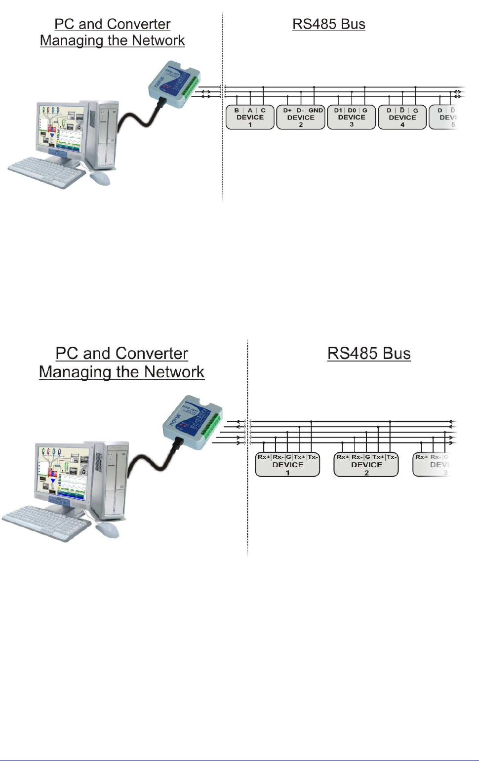 In this mode two pairs of wires are used. Data from the RS485 converter to the networked devices are transmitted