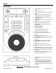 AXIS 8 FEATURES 1. PLAY/STUTTER- To start the music from the initial cue point. 2. PAUSE- To pause the music. 3. CUE- To move the music to the cue point and preview the selection. 4. WHEEL- Used for various functions such as cueing, scratching, pitch bend, searching, and effect control 5. LCD DISPLAY- Indicates all the functions, as they are occurring, with the CD. 6. OPEN/CLOSE- Pressing will open or close the disc tray on the transport. 7. SING- To set play mode in single or continuous play.