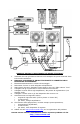 CONFIGURAZIONE PANNELLO ANTERIORE 18. 19. 20. 21. Controllo Taglio Crossfader: La posizione di questa manopola determina quanto il crossfader misserà velocemente od intensamente. Manopola Uscita Master: Questa manopola regola il volume dell’uscita principale. Indicatore di Livello Stereo: traccia velocemente ed accuratamente il livello di audio che gli viene inviato. Sub Bass: Riproduce le frequenze sub armoniche un ottava più in basso e le aggiunge al segnale originale.