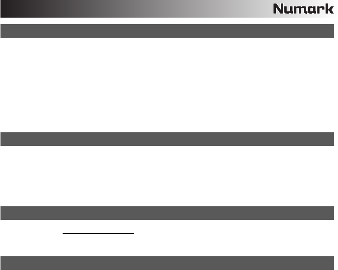 Recarsi alla pagina http://www.numark.com per registrare il M1USB. La registrazione del prodotto garantisce