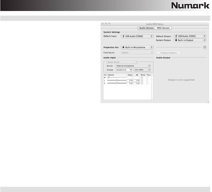 besitzt (wie z.B. Apple iTunes), werden die Settings des Audio MIDI Setups verwendet. Bitte beachten Sie, dass