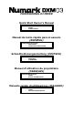 PROFESSIONAL DJ MIXER Quick Start Owner’s Manual BOX CONTENTS • MIXER • POWER SUPPLY Manual de inicio rápido para el usuario (ESPAÑOL) CONTENIDOS DE LA CAJA • MEZCLADOR • FUENTE DE ALIMENTACIÓN Schnellbedienungsanleitung (DEUTSCH) SCHACHTELINHALT • MISCHPULT • STROMKABEL Manuel d’utilisation du propriétaire (FRANÇAIS) CONTENU DE LA BOÎTE • MIXER • BLOC D’ALIMENTATION Manuale rapido di utilizzazione (ITALIANO) CONTENUTO DELLA CONFEZIONE • MIXER • CAVI DI ALIMENTAZIONE