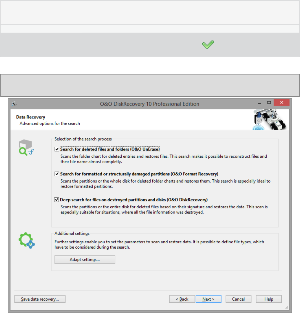 Note: Please bear in mind that the search techniques used by O&O FormatRecovery on e.g. hard disks encrypted