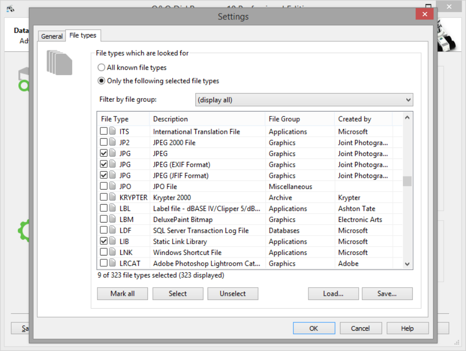 O&O DiskRecovery scans for all highlighted file types. All unselected file types are hidden. Normally, though, you can