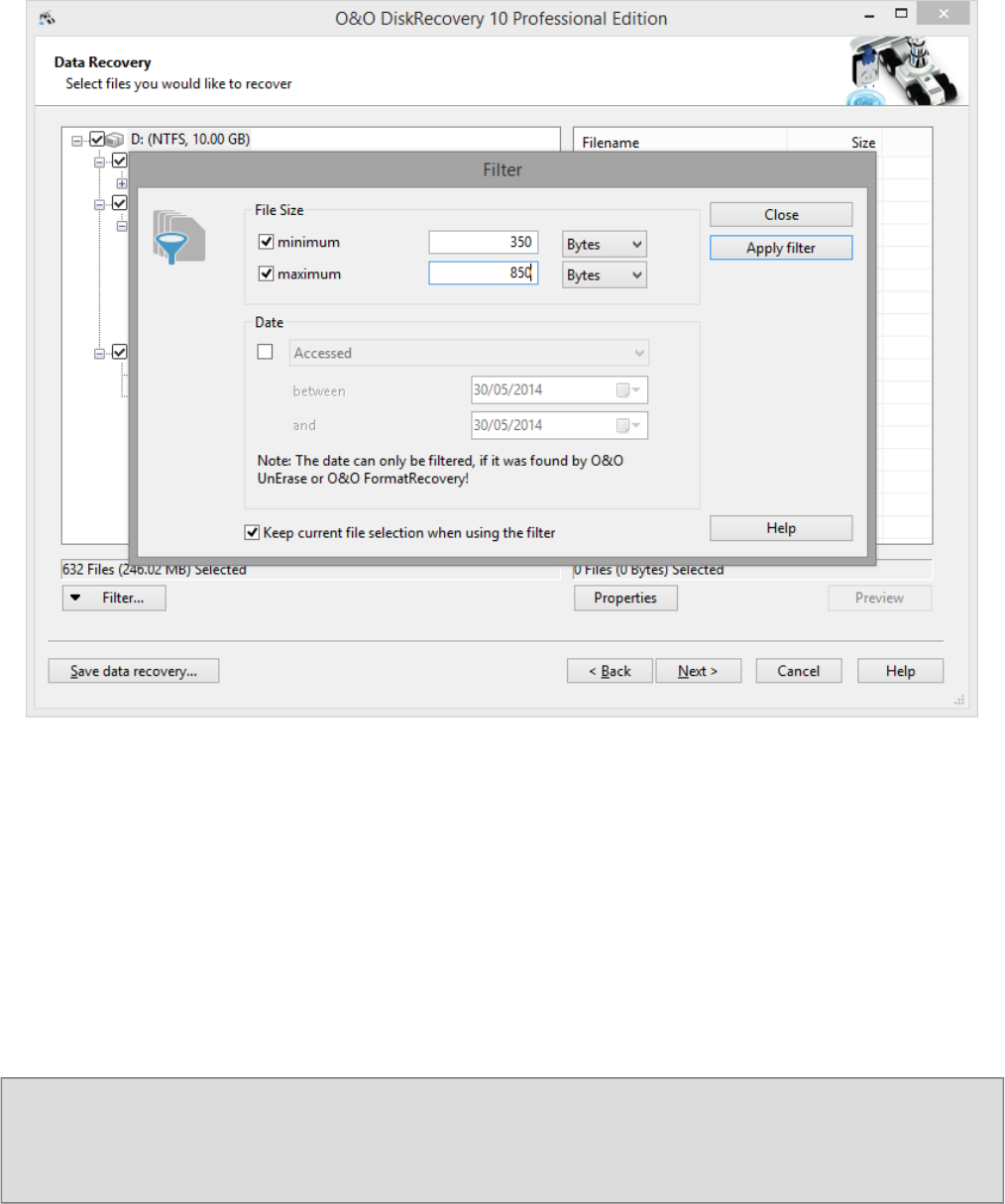 but any folder, including network folders, may be selected for this. O&O DiskRecovery automatically creates a sub-
