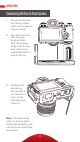 OPERATION Connecting the Grip to Your Camera 1. Align the camera mounting screw with your camera’s tripod socket. 2. Place the camera into the grip. Keep in mind that the camera strap connectors may have to be repositioned for a proper fitting. 3. Tighten the mounting screw with a screwdriver, coin, or the included hex wrench. Note: To remove the grip or vertical plate from the baseplate, use one of the included hex wrenches.