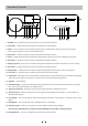 Location of Controls Home 1 Preset 2 3 4 5 Aux-in Line-out DC IN 12V ON/OFF 1. Standby - Turns off all functions except the clock and alarm features 2. Preselect1 - Used to select previously stored favorite radio station 3. Home - Press to return to the central location of the software for selection of functions while continuing to play the currently selected function 4. Preselect 2 - Used to select previously stored favorite radio station 5.