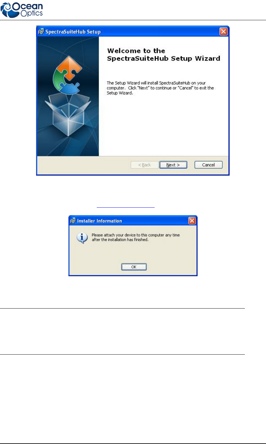 3. Follow the prompts for the SpectraSuiteHub Setup Wizard.