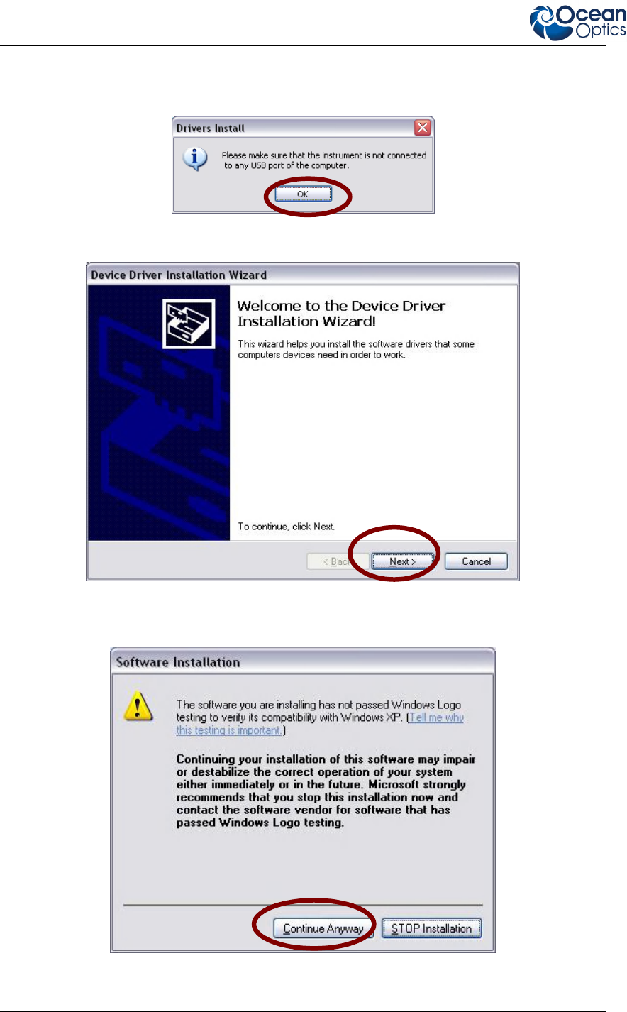 10. The device drivers installation will then start automatically. Disconnect the spectrometer if is
