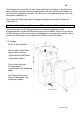 DE Auf eine ausreichende Lüftung achten mind.300cm², siehe nebenstehende Abbildung. Das Gerät sorgfältig in die Einbau-Nische einrücken und sicher stellen, dass es gerade ausgerichtet ist und optimal steht. Anschliessend das Gerät mit den 4 mitgelieferten Holzschrauben an den Befestigungspunkten in die Einbau-Nische befestigen, siehe Abbildung.