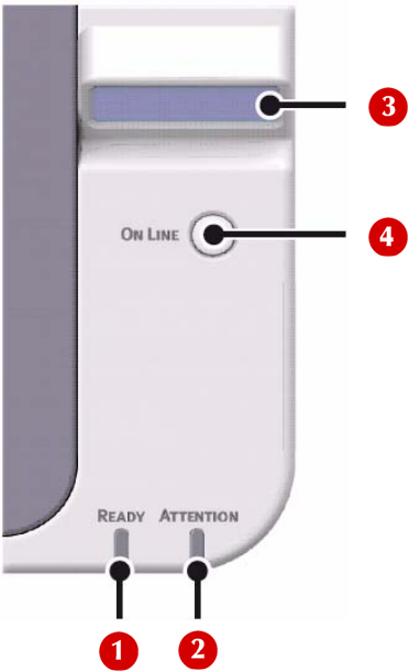 témoins à DEL comportent les termes Ready [Prêt] (1) et