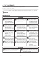 ●● For Your Safety Read the User’s Manual for your safety before using the product. Cautions related to safety WARNING CAUTION A warning provides additional information which, if ignored, may result in a risk of personal injury. A caution provides additional information which, if ignored, may result in equipment malfunction or damage. General cautions WARNING Do not touch the safety switch inside the printer. Doing so may cause electric shock when high voltage occurs.
