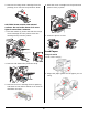 8. Insert the Stacker Lower catch tray. 12.Connect finisher power cord to the printer accessory power connection. 13.Level the finisher making it parallel to the printer. 9. Remove the access cover and plug in the finisher interface cable. 10.Remove the printer interface cover. 14.Open the finisher door and remove the internal tags and shipping brackets. 11.Connect the interface connector and replace the cover.