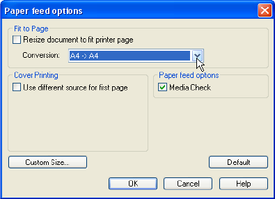 click the Paper Feed Options button. Under Fit to Page,