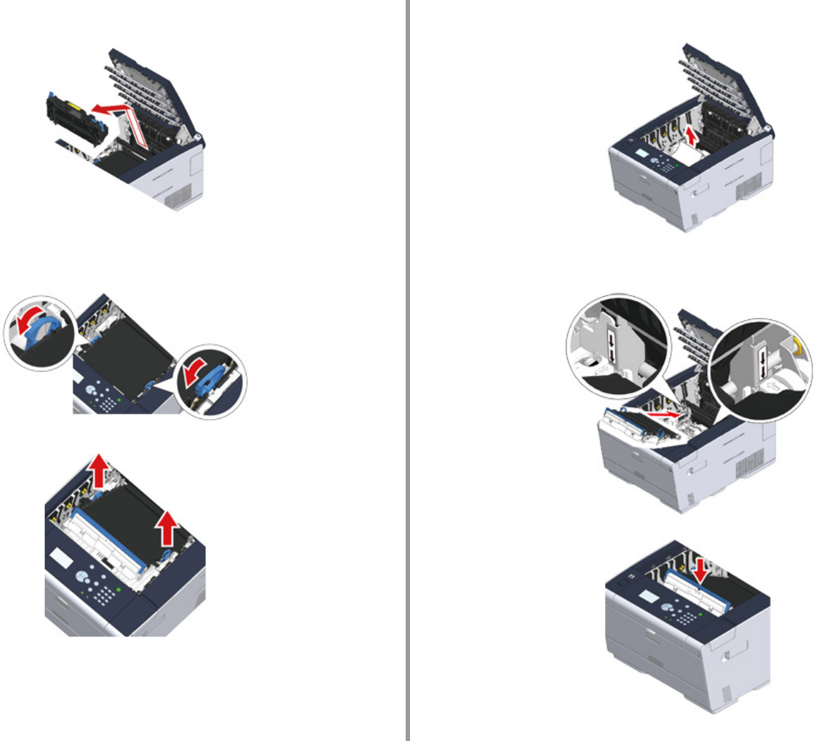 Tilt the lock levers on the both sides of the belt unit toward you and remove the