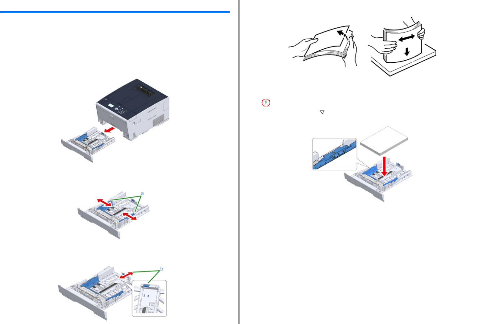 The procedure when loading paper in Tray 1 is used as an example.