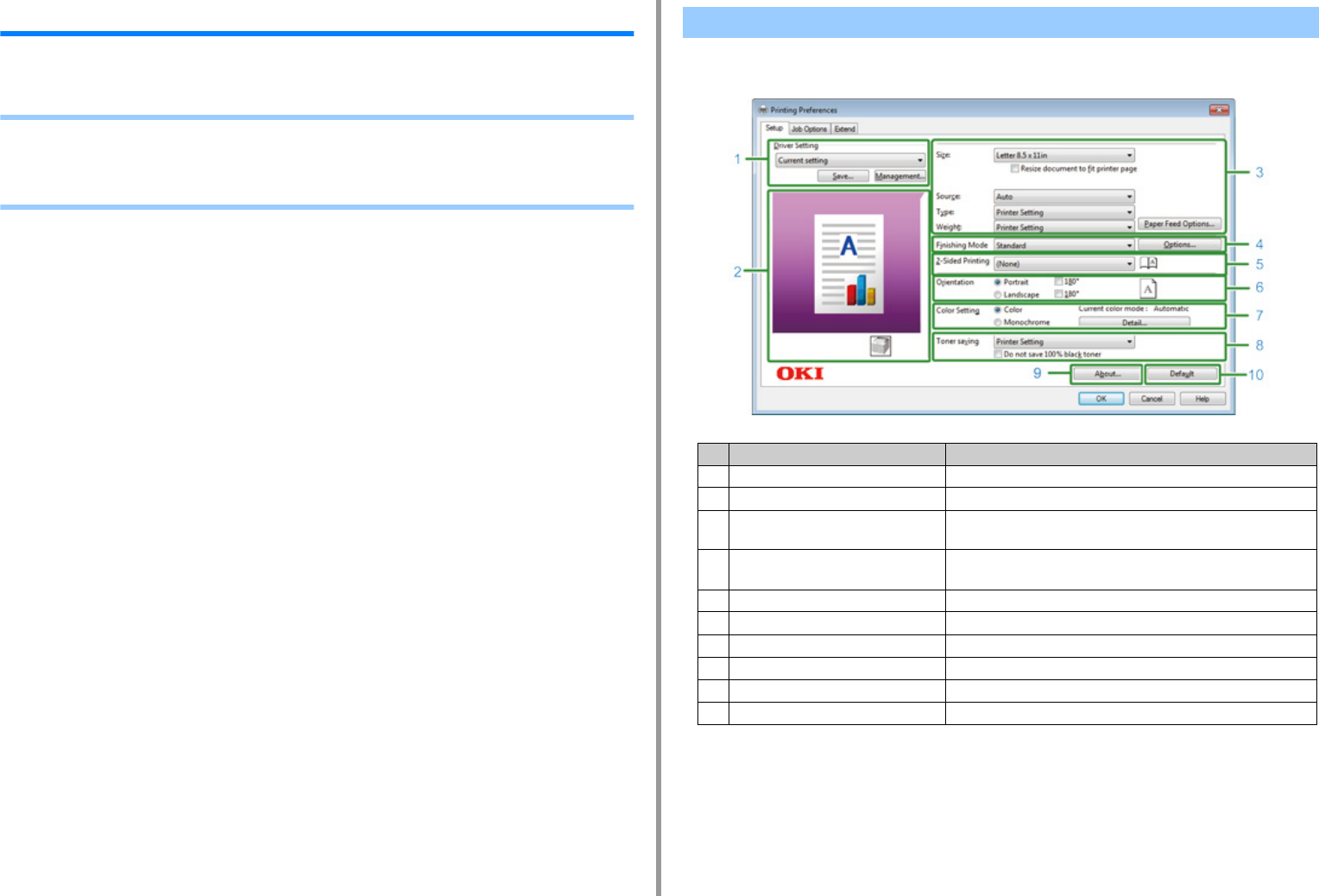 4 Finishing Mode Specifies the multi-page printing, booklet printing, poster printing, or