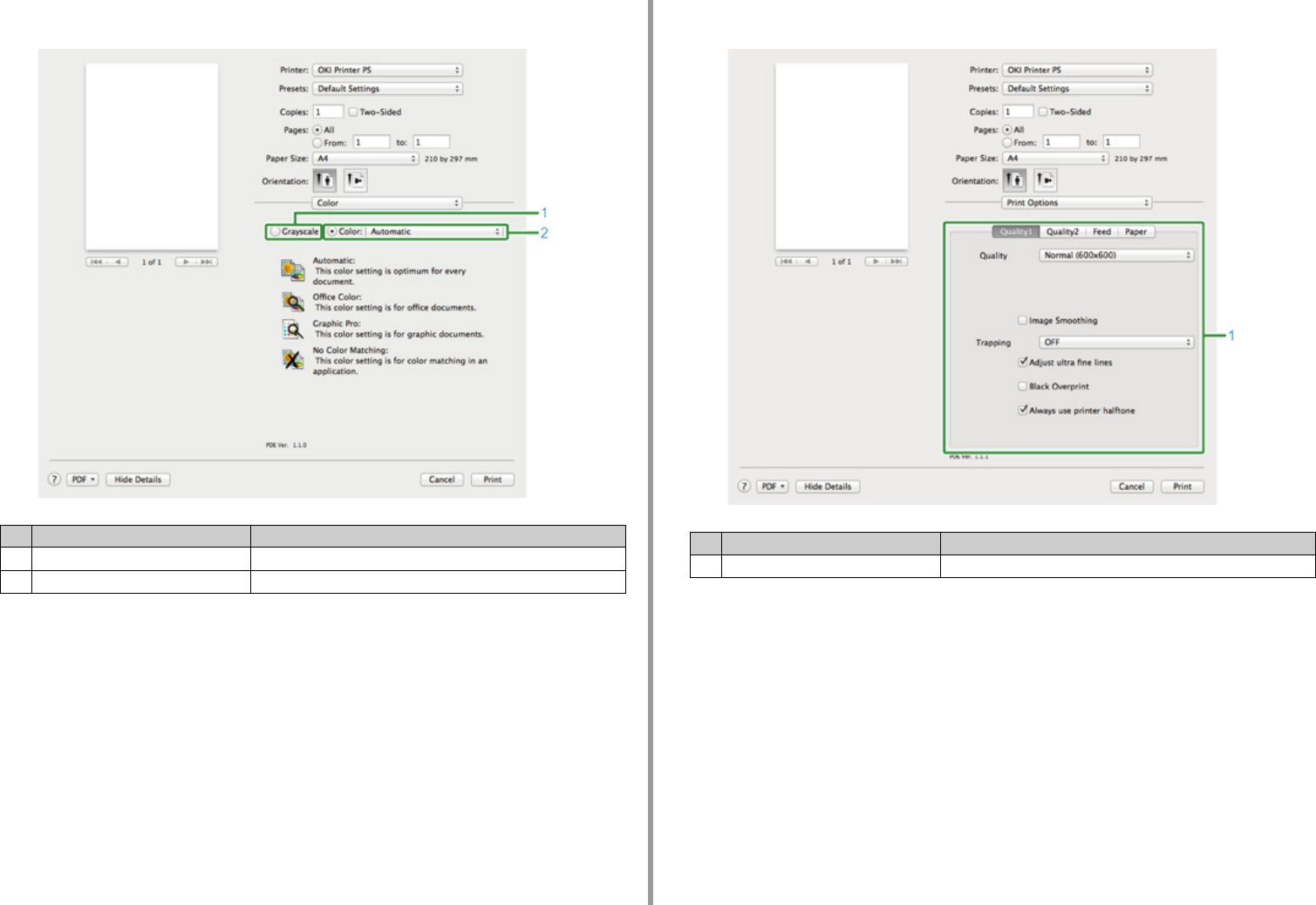 1 Quality1, Quality2, Feed, Paper Specifies the print quality, toner saving, paper type, etc.