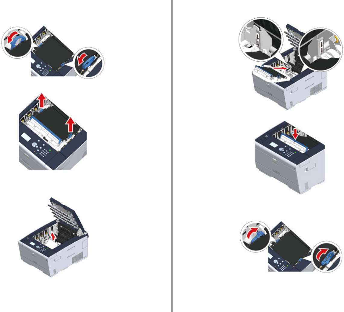 Turn the lock levers on the both sides of the belt unit toward you and remove