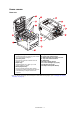 REAR VIEW This view shows the connection panel, the rear output stacker and the location of the optional duplex (two-sided printing) unit. 5 6 4 7 3 1 2 1. 2. 3. 4. ON/OFF switch. AC power socket. Duplex unit (when fitted). Rear, face up stacker. 5. USB interface. 6. Network interface.* 7. Parallel interface. * The Network Interface may have a protective “plug” which must be removed before connection can be made.