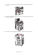 1. Wenn ein Finisher an den Drucker angeschlossen ist, betätigen Sie den Hebel (1) des