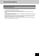 General Precautions When power failure occurs • • • • • • • Neither Fax nor telephone functions of the device are available in the event of a power failure. You can use the external telephone to dial a number to make a call or to receive a call. (See the operator’s manual of your telephone set for details.) The originals stored in the memory might be deleted completely. Settings or registration contents such as the date and time or the address book data will not be deleted.
