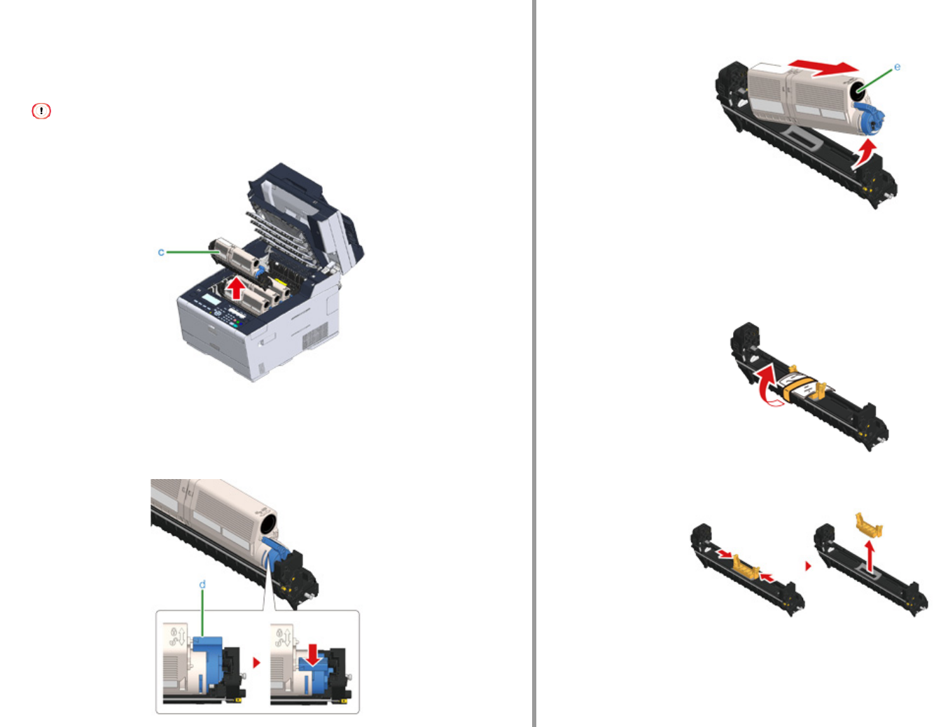 Heben Sie die Tonerkartusche (e) von rechts an und nehmen Sie sie aus der